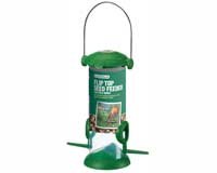 Fully functional bird feeder with large open area to accommodate an ample amount of birdseed or even a piece of fruit