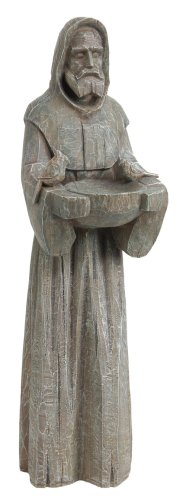 - St. Francis holds a basin that can be used as a bird bath or feeder