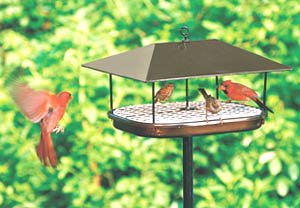 If big birds are monopolizing your birdfeeder, you need a secure and safe way to discourage them without also chasing off the little guys. The Seed Saver birdfeeder from Droll Yankees uses an adjustable umbrella-like dome to keeps big birds from looting the seed and fruit intended for smaller ones. The dome has the added benefit of protecting small birds from the weather while they feed. Held securely in place wherever you put it by an adjustable collar and set screw combination, the dome can be tailored to accommodate your favorite feathered population. Though the Seed Saver features a stout brass rod for hanging, it can also be pole-mounted. Simple to assemble and easy to clean, it holds three cups of suet, seed, fruit, or mealworms.